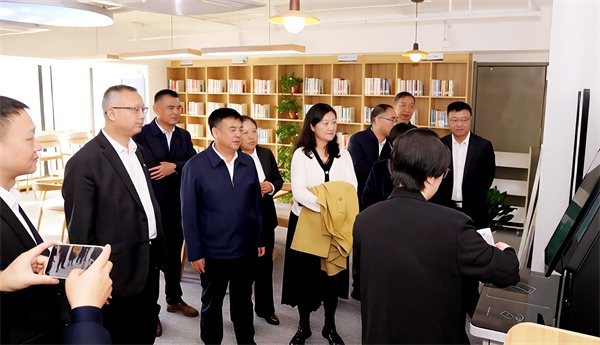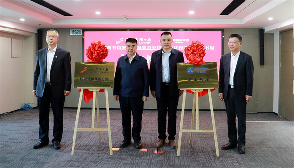儀式上,周云岳、莊華章和郝軍亮、宋世杰共同為“陜西省圖書館陜西環保集團分館”“陜西環保集團職工書屋”揭牌。坐落于集團總部旺都D座26層、面積63平方米的“分館·書屋”常態化配備1500余冊圖書、20個閱讀位及數字化借閱設施,實現了與省圖書館所有館區系統的通借通還與資源更新,達到無人值守、刷證進入、自助檢索借還。