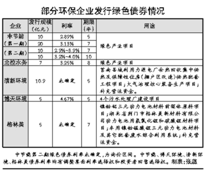 近一年來,綠色債券在我國債券市場上表現搶眼,成為企業特別是環保企業有力的融資工具。今年8月,北控水務集團有限公司(以下簡稱“北控水務”)發行綠色熊貓債;隨后,博天環境集團有限公司(以下簡稱“博天環境”)、北京清新環境技術股份有限公司(以下簡稱“清新環境”)、中國節能環保集團公司(以下簡稱“中節能”)等環保企業,都陸續獲批發行綠色債券。