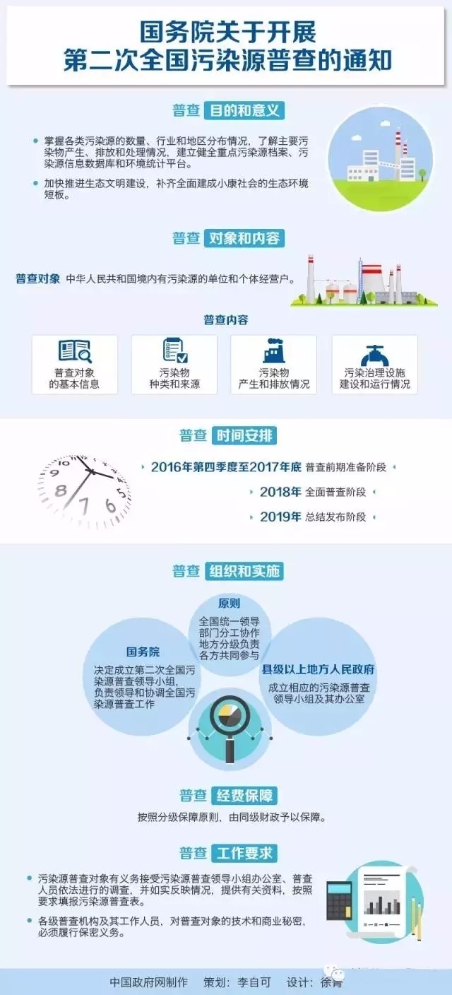 全國污染源普查是重大的國情調查,是環境保護的基礎性工作。開展第二次全國污染源普查,掌握各類污染源的數量、行業和地區分布情況,了解主要污染物產生、排放和處理情況,建立健全重點污染源檔案、污染源信息數據庫和環境統計平臺,對于準確判斷我國當前環境形勢,制定實施有針對性的經濟社會發展和環境保護政策、規劃,不斷改善環境質量,加快推進生態文明建設,補齊全面建成小康社會的生態環境短板具有重要意義。